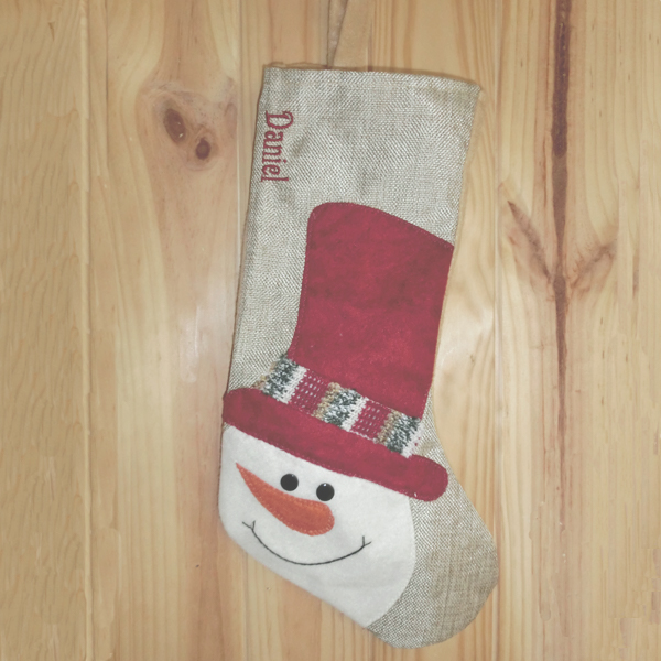 Calcetín Navideño muñeco de nieve personalizado con el nombre de los niños que han portado bien este año.